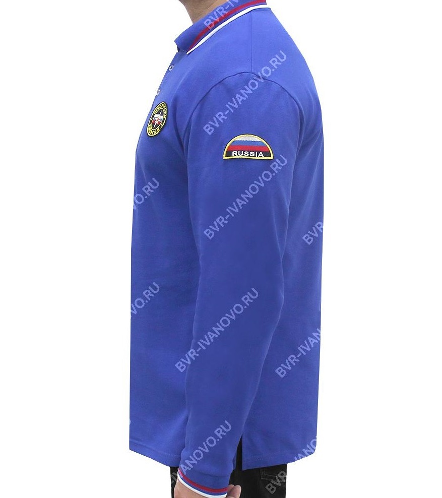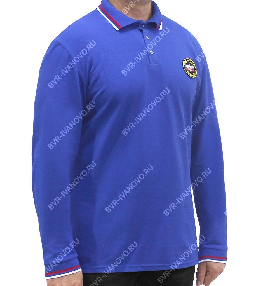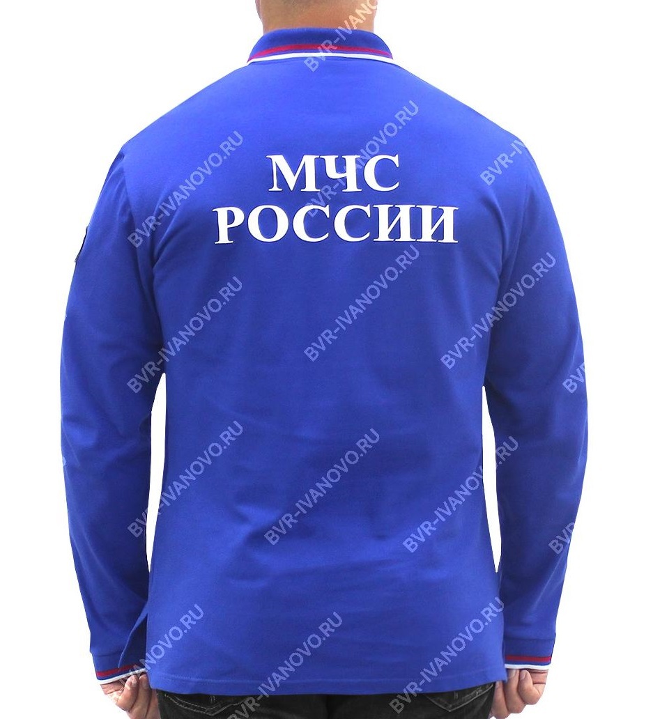 Рубашка Поло длинный рукав МЧС России цв.Василёк( Хлопок)