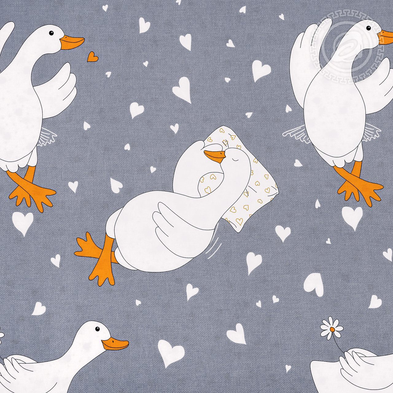 Постельное белье с гусями – тренд последних лет. Милые и забавные птички ассоциируются с чем-то очень добрым и домашним и вызывают умиление. На комплекте из поплина веселый рисунок с гусями в нежных оттенках. Здесь птички отдыхают на мягких подушках, читают, о чем-то мечтают и подглядывают друг другу в телефоны. Знакомо, правда?